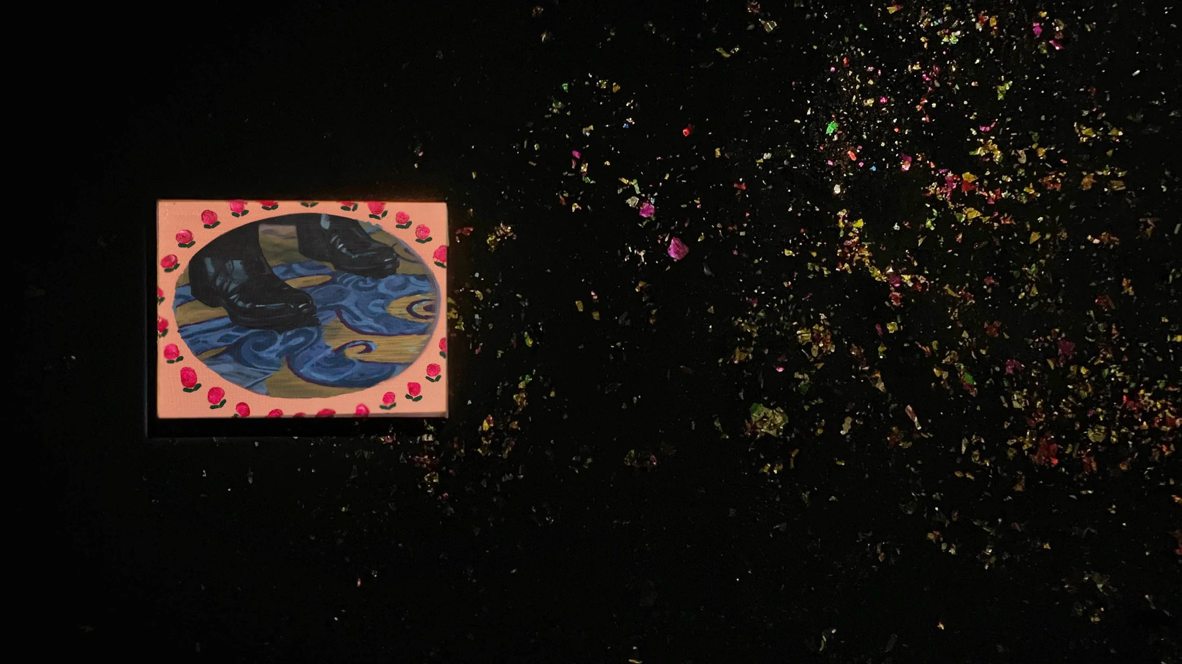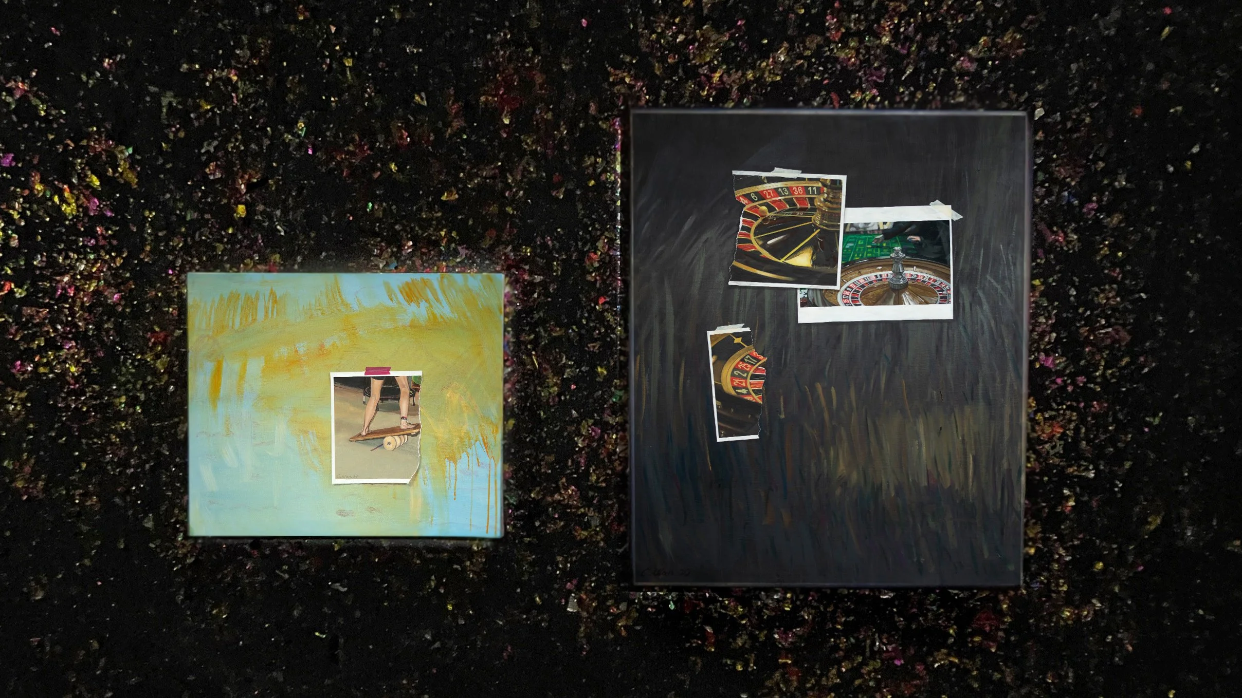 Sequin and oil on canvas